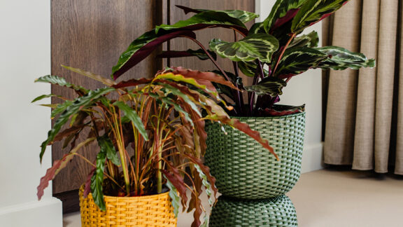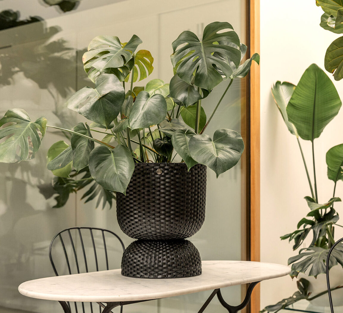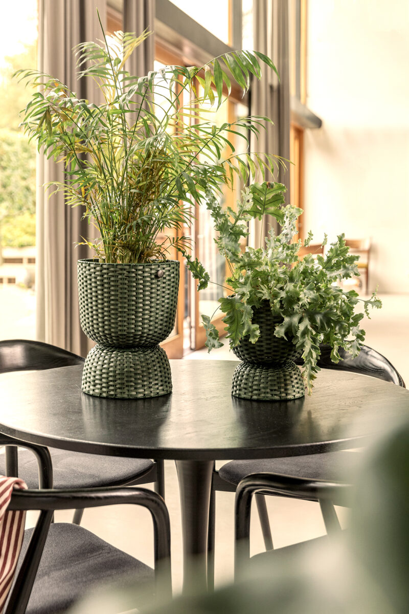 Discover the perfect addition to your plant collection: the Twist! Place a green friend on the platform in the basket and show it off at its best. Experiment with the Twist and make it live up to its name by turning it upside down and using it the other way around! Whether you want to accentuate a small house plant or create an eye-catcher with a big plant: the Twist is available in a number of sizes and colours. Hand-woven from recycled plastic.